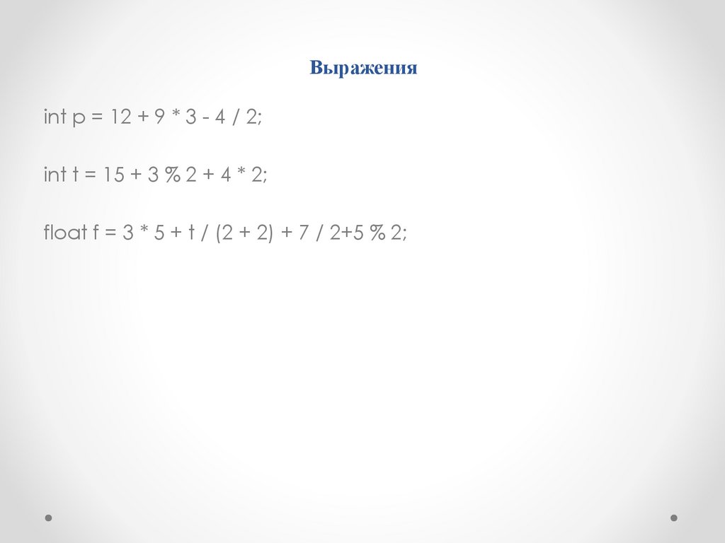 Выраженияint p = 12 + 9 * 3 - 4 / 2;