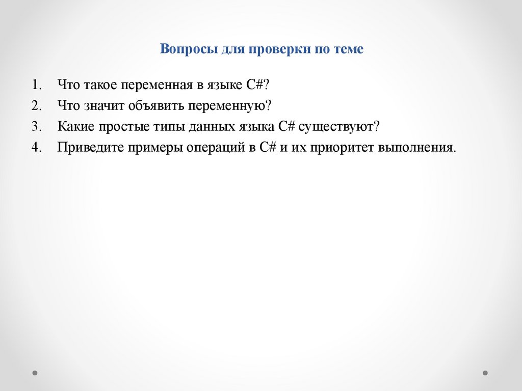 Вопросы для проверки по теме1.