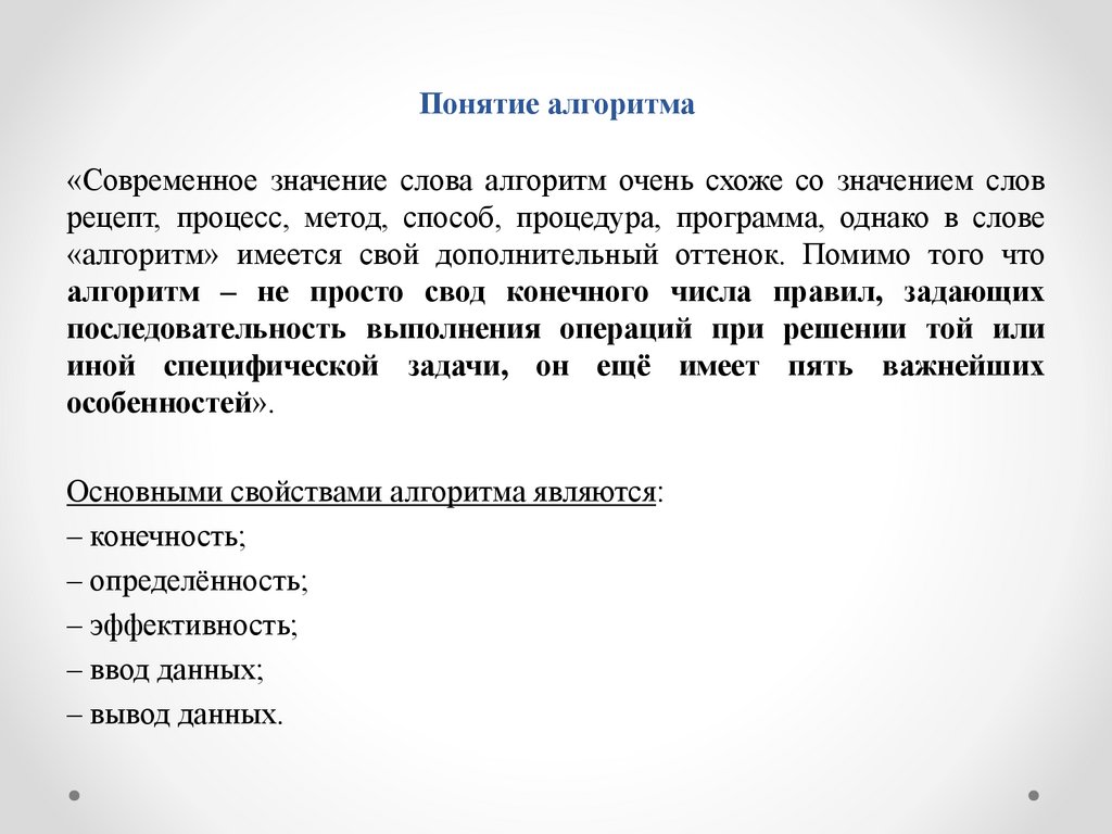 Понятие алгоритма«Современное значение слова алгоритм очень схоже со значением слов