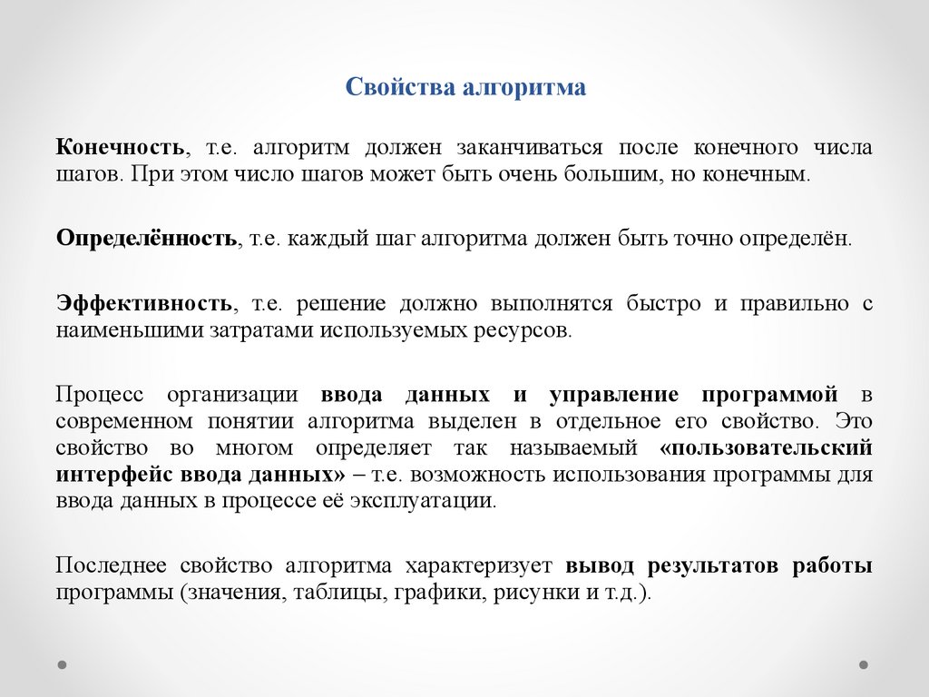 Последнее свойство алгоритма характеризует вывод результатов работы