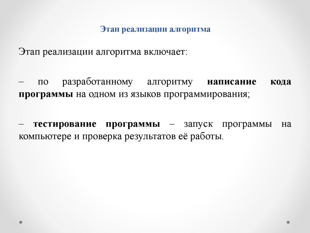 Этап реализации алгоритмаЭтап реализации алгоритма включает: