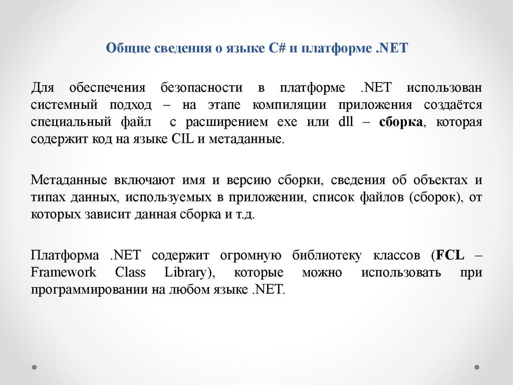 Общие сведения о языке C# и платформе .NETДля обеспечения безопасности в платформе .NET использован