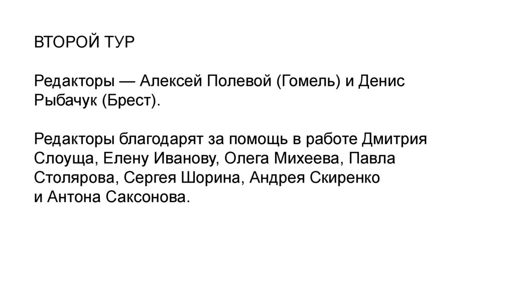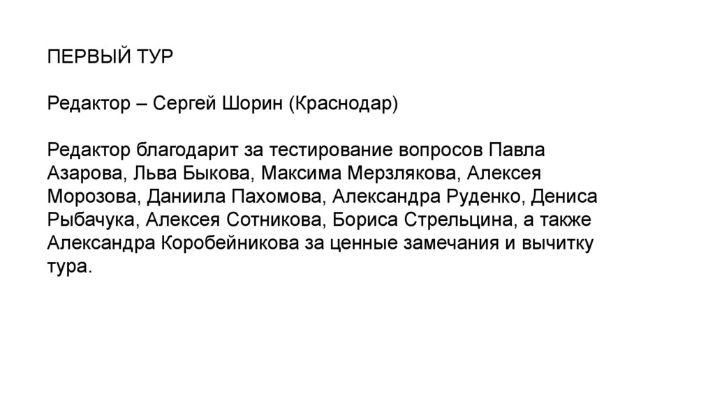 ПЕРВЫЙ ТУРРедактор – Сергей Шорин (Краснодар)