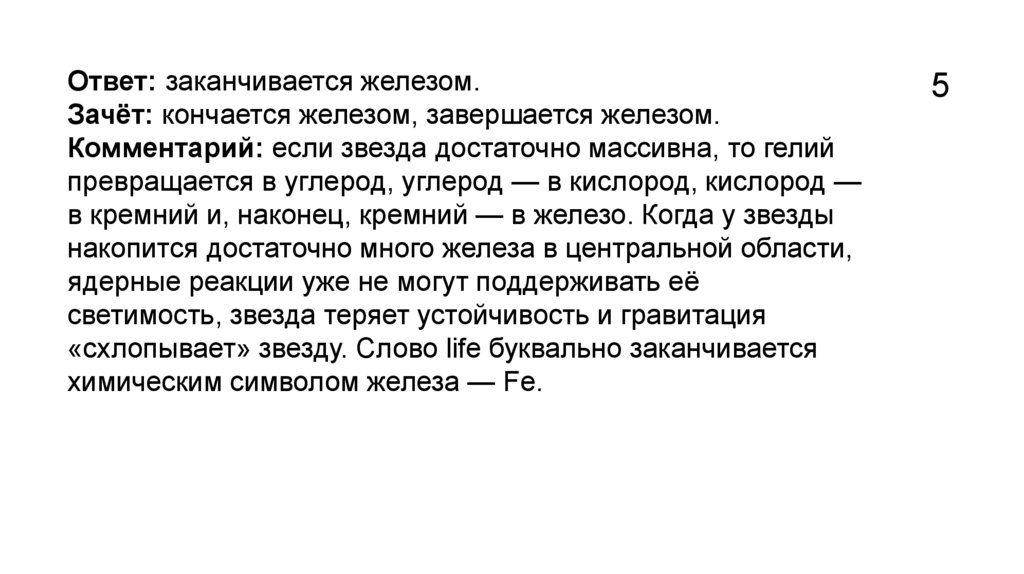 в кремний и, наконец, кремний — в железо. Когда у звезды