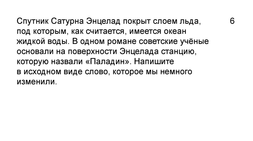 Спутник Сатурна Энцелад покрыт слоем льда,под которым, как считается, имеется океан