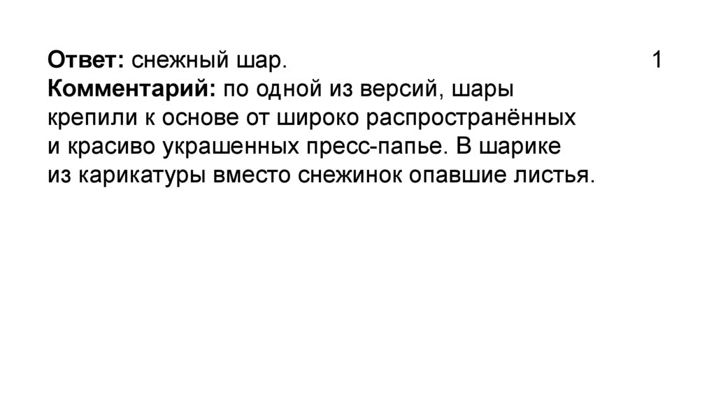 Ответ: снежный шар.Комментарий: по одной из версий, шары