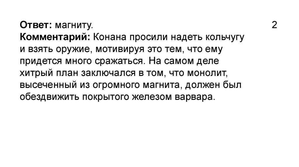 Ответ: магниту.Комментарий: Конана просили надеть кольчугу