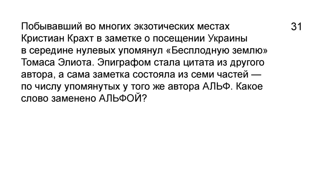 Томаса Элиота. Эпиграфом стала цитата из другого