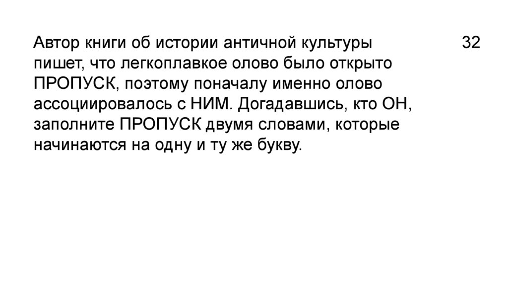 Автор книги об истории античной культурыпишет, что легкоплавкое олово было открыто