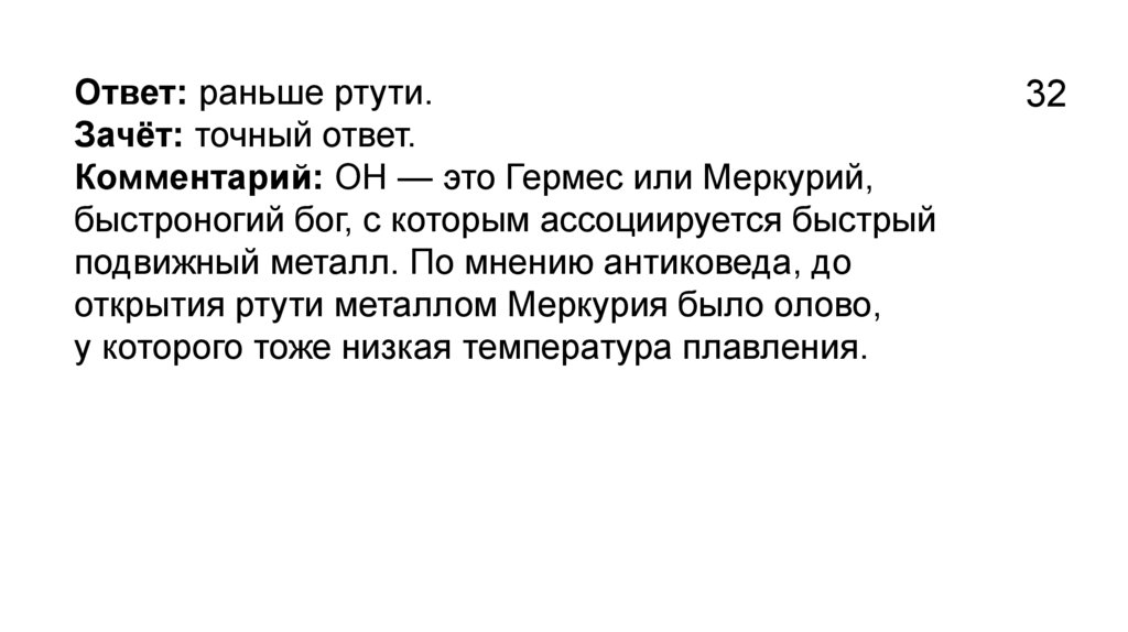 Ответ: раньше ртути.Зачёт: точный ответ.