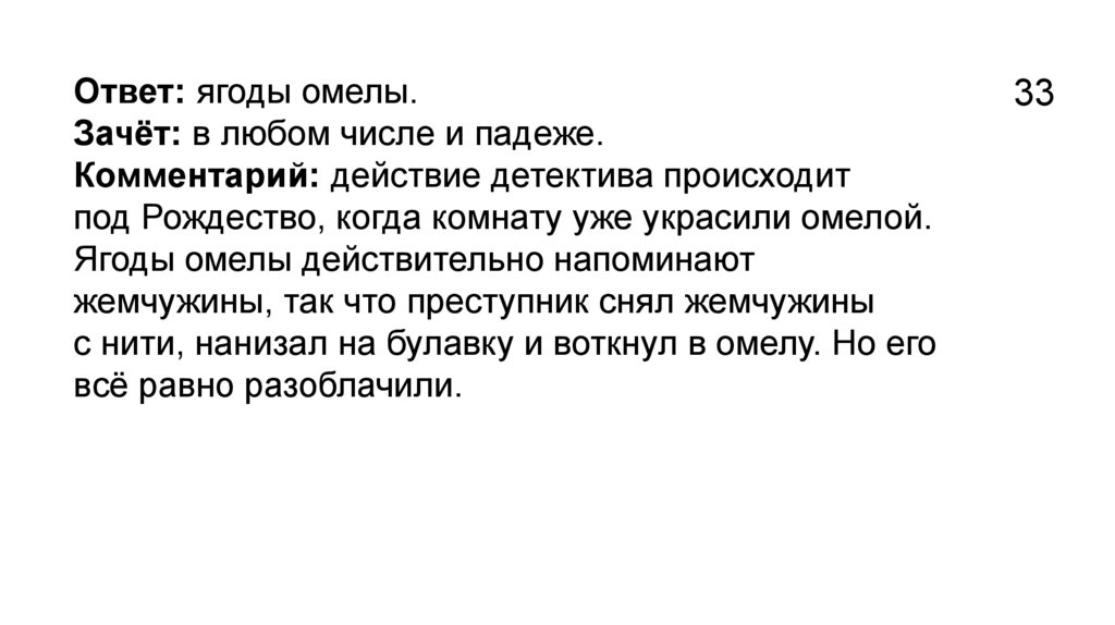 Ответ: ягоды омелы.Зачёт: в любом числе и падеже.