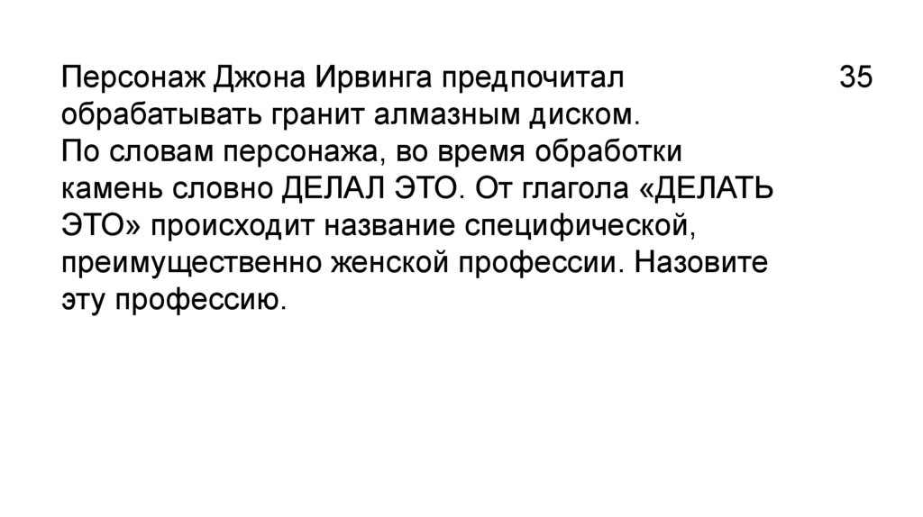 Персонаж Джона Ирвинга предпочиталобрабатывать гранит алмазным диском.