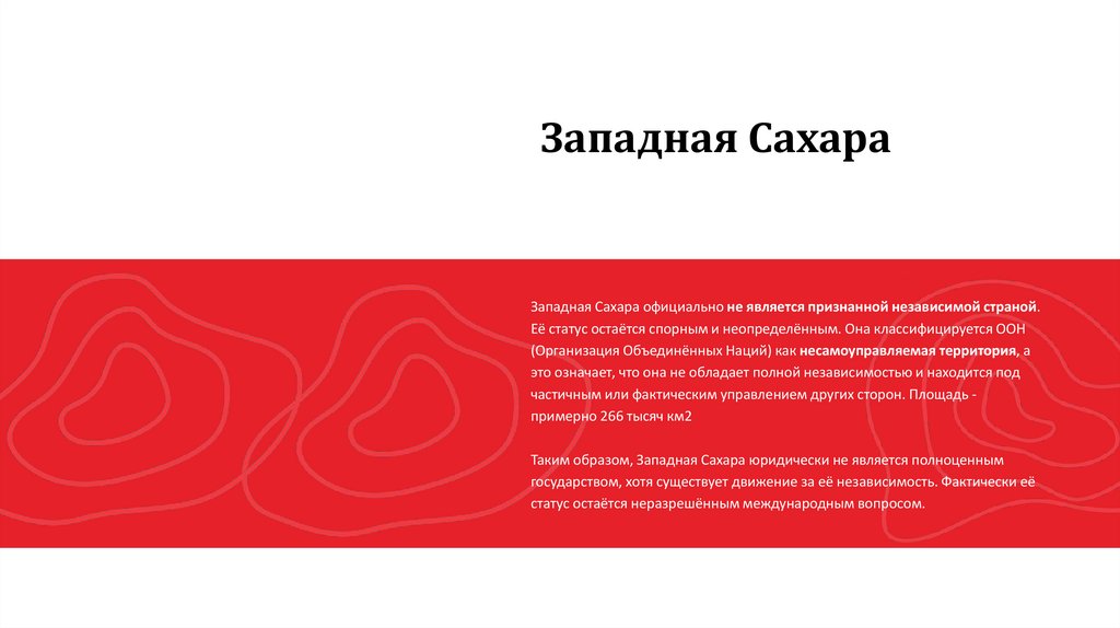Западная СахараЗападная Сахара официально не является признанной независимой страной.