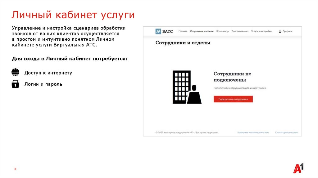 Обеспечивает доступ к услуге и Личному кабинету ВАТС.