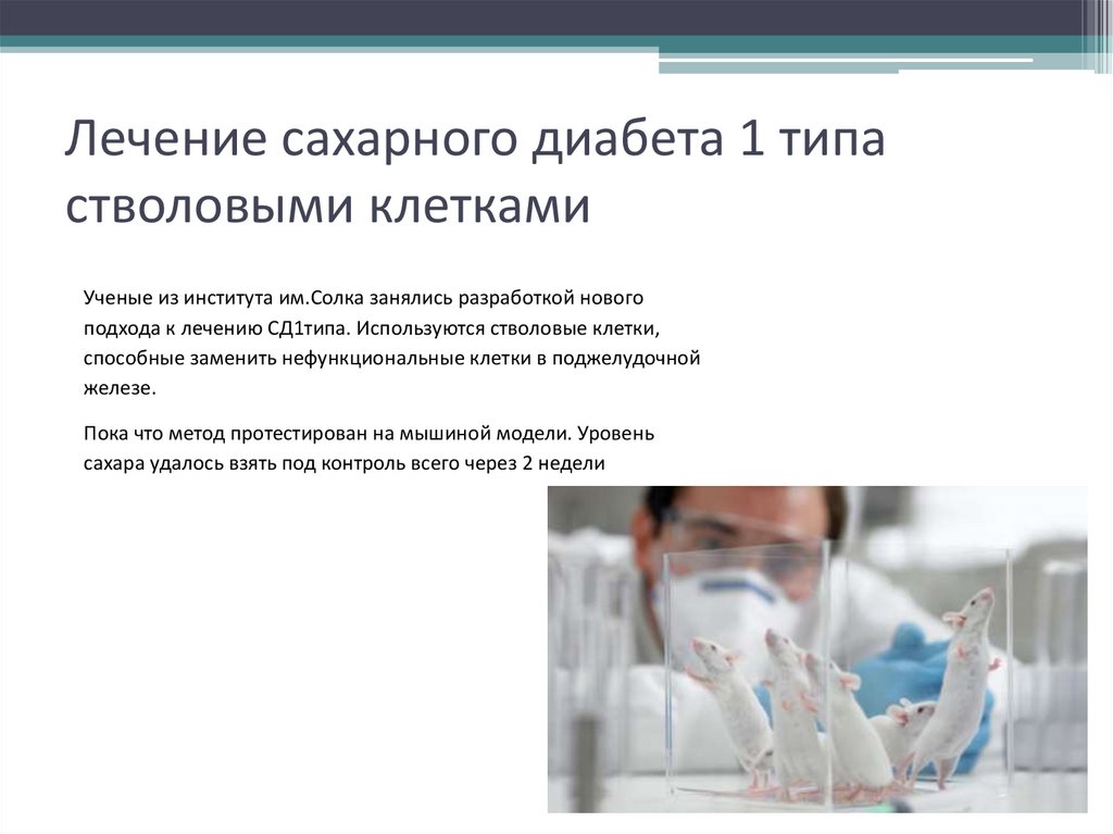 подхода к лечению СД1типа. Используются стволовые клетки,