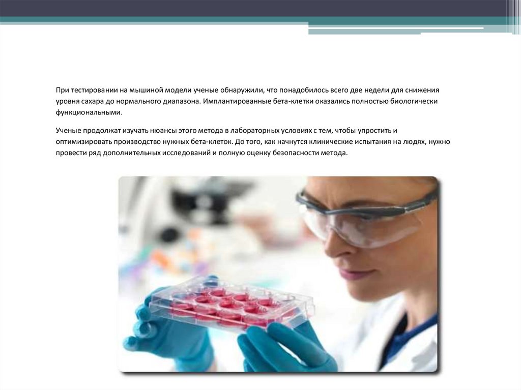 оптимизировать производство нужных бета-клеток. До того, как начнутся клинические испытания на людях, нужно