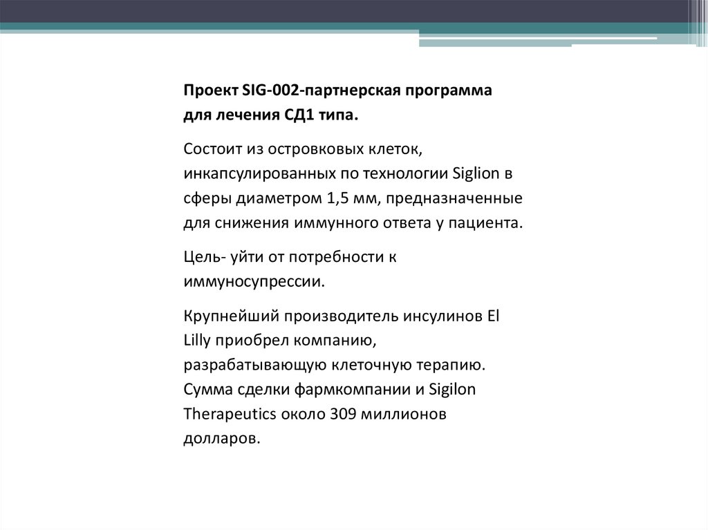 Проект SIG-002-партнерская программадля лечения СД1 типа.