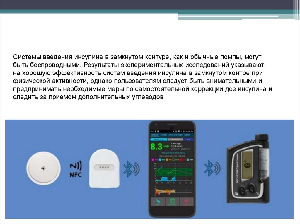 Системы введения инсулина в замкнутом контуре, как и обычные помпы, могутбыть беспроводными. Результаты экспериментальных исследований указывают