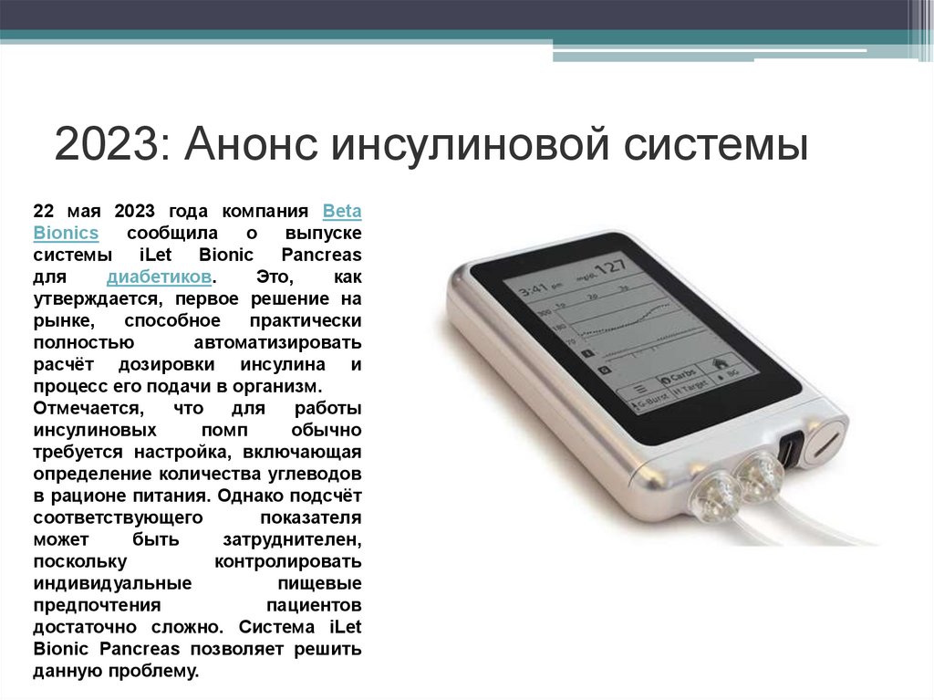 2023: Анонс инсулиновой системы22 мая 2023 года компания Beta