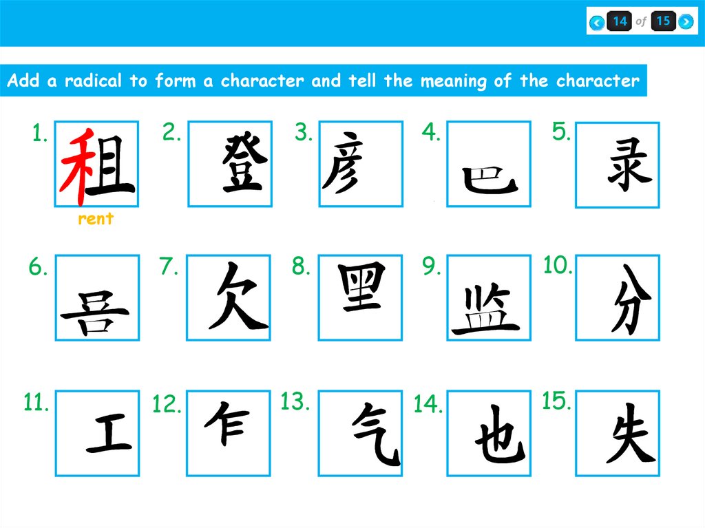 14 of 15Add a radical to form a character and tell the meaning of the character