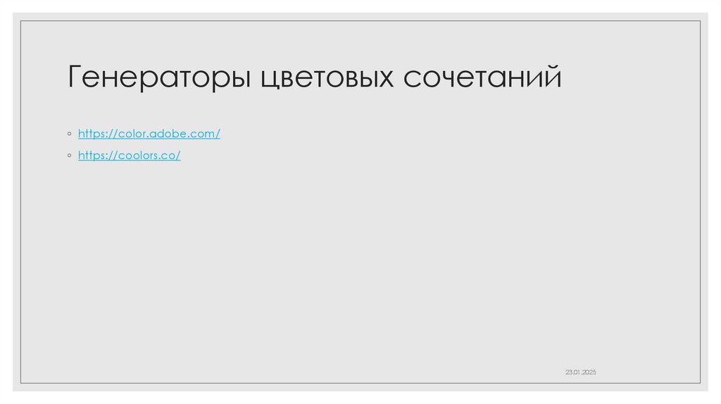 Генераторы цветовых сочетаний◦ https://color.adobe.com/