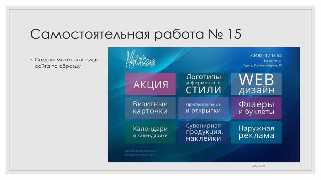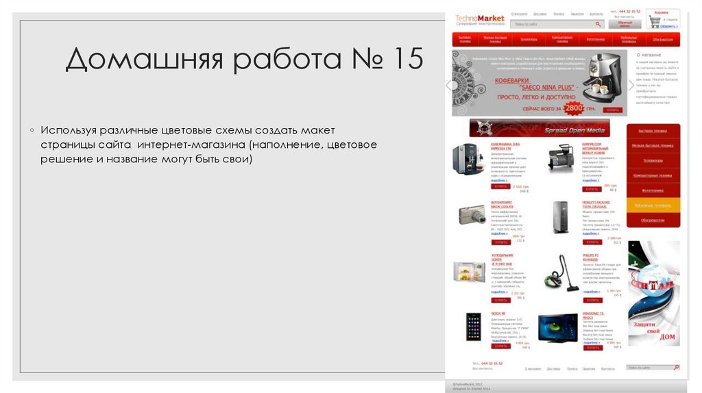 Домашняя работа № 15◦ Используя различные цветовые схемы создать макет