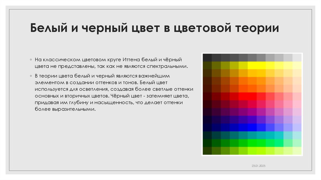 Белый и черный цвет в цветовой теории◦ На классическом цветовом круге Иттена белый и чёрный