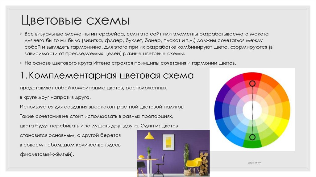 рядом с комплементарным ему цветом. Эта схема обеспечивает