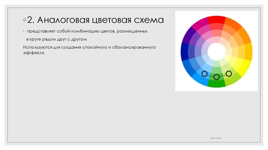 ◦2. Аналоговая цветовая схема◦ представляет собой комбинацию цветов, размещенных
