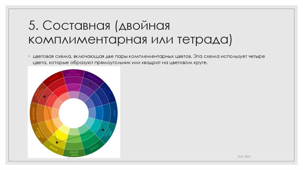 ◦ цветовая схема, включающая две пары комплементарных цветов. Эта схема использует четыре