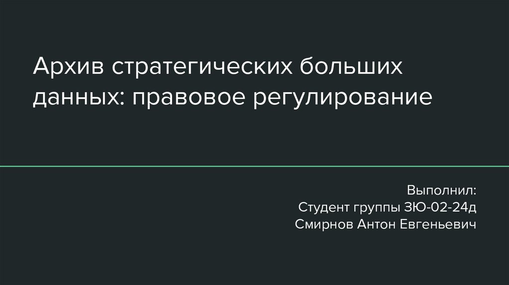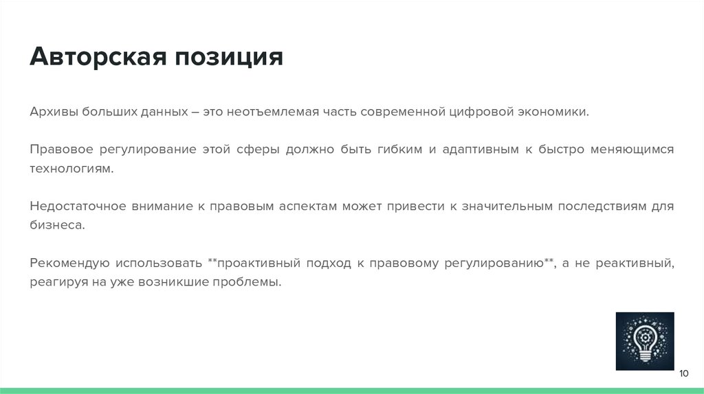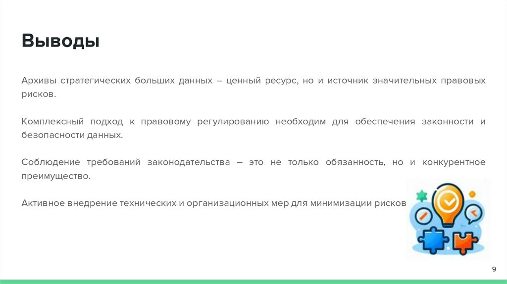 ВыводыАрхивы стратегических больших данных – ценный ресурс, но и источник значительных правовых