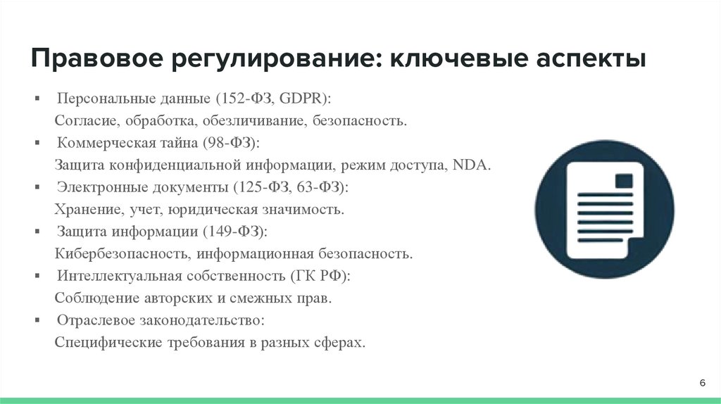 Правовое регулирование: ключевые аспектыПерсональные данные (152-ФЗ, GDPR):