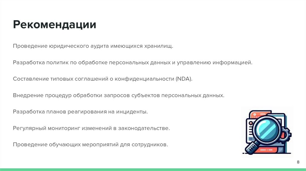 РекомендацииПроведение юридического аудита имеющихся хранилищ.