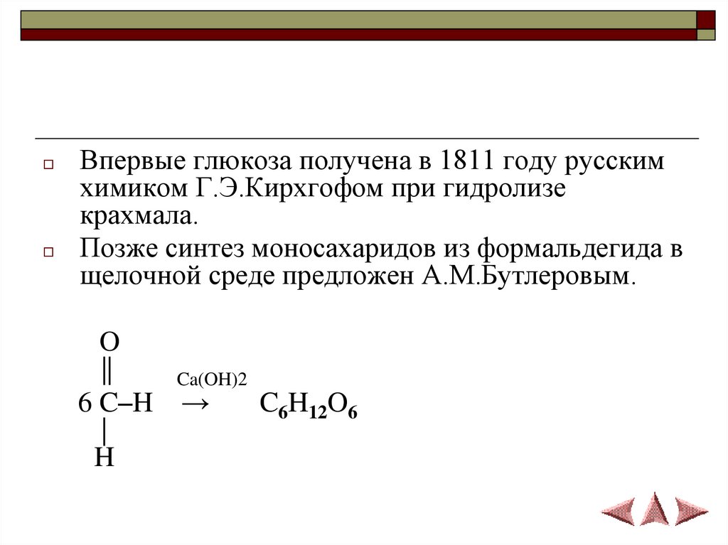 Впервые глюкоза получена в 1811 году русским