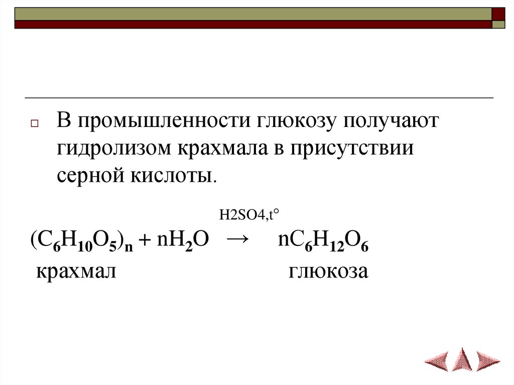 □В промышленности глюкозу получают