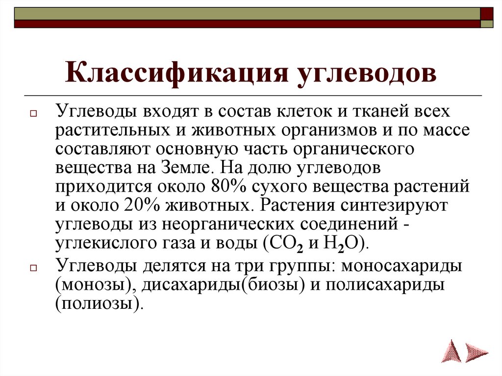 Углеводы. Классификация углеводов