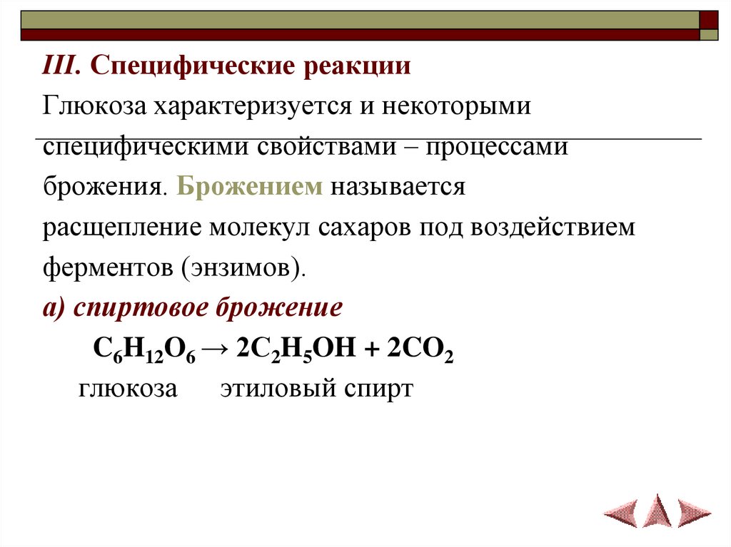 III. Специфические реакцииГлюкоза характеризуется и некоторыми