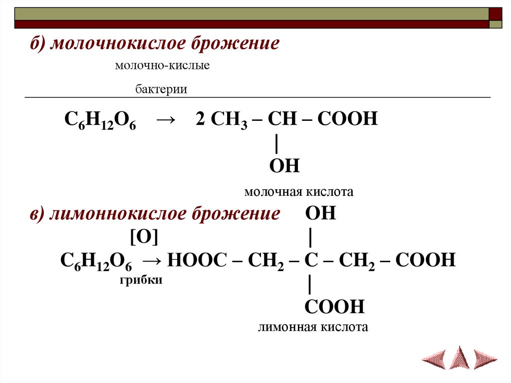 в) лимоннокислое брожение OH