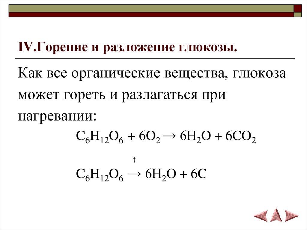 IV.Горение и разложение глюкозы.Как все органические вещества, глюкоза