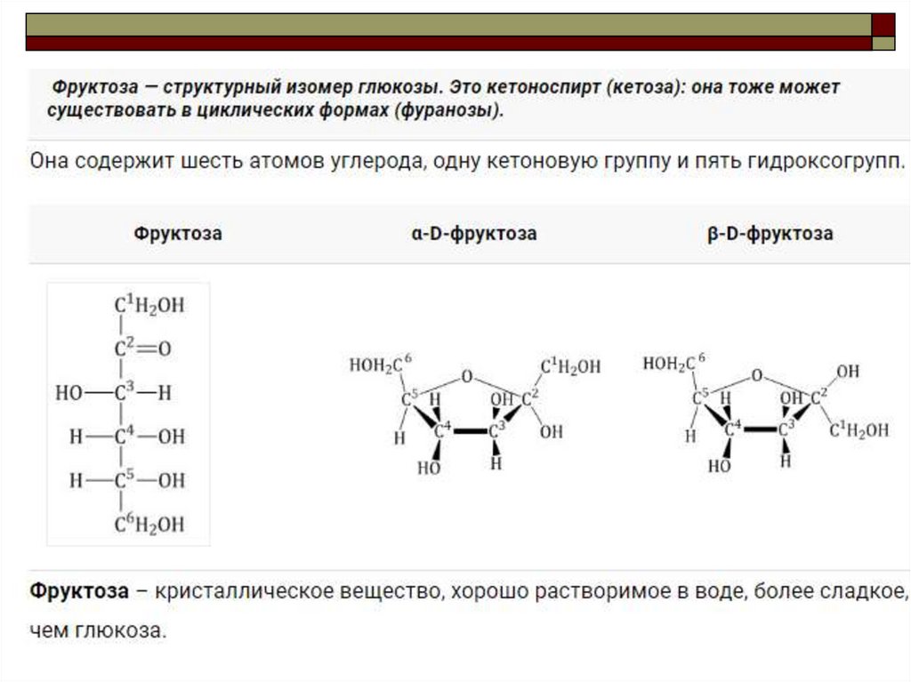 фруктоза – кетоноспиртом.