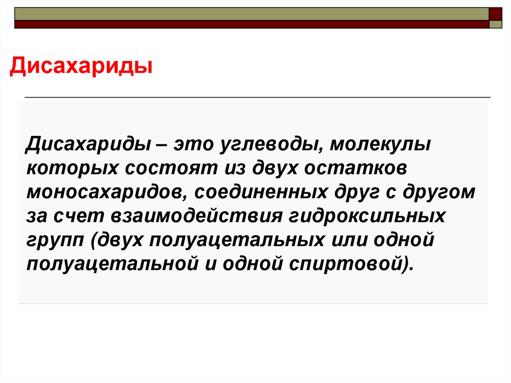 ДисахаридыДисахариды – это углеводы, молекулы
