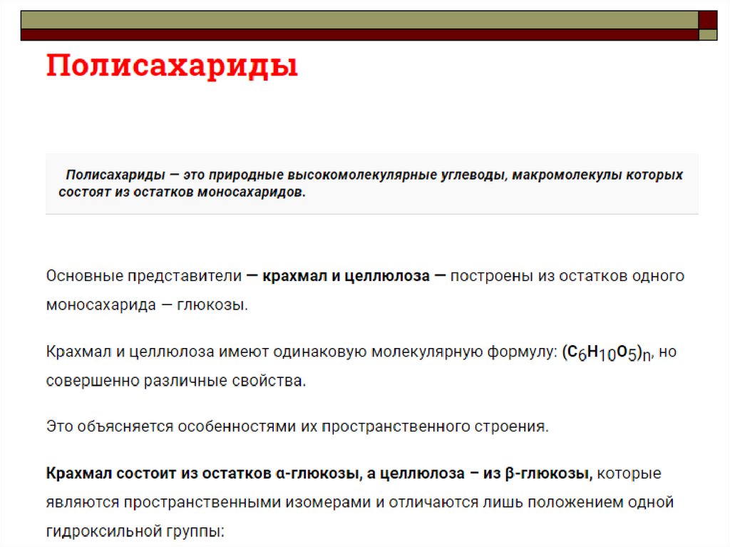 Крахмал, целлюлоза, гликоген, хитин (C6H10O5 )n