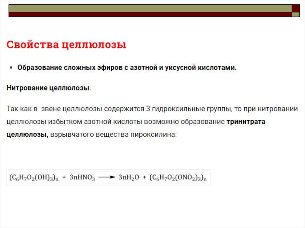 Гидролиз целлюлозы.Целлюлоза, подобно крахмалу, в кислой среде может