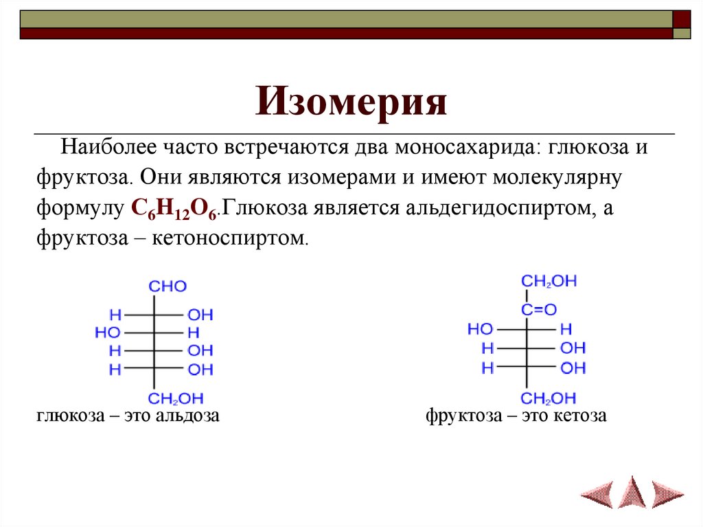 ИзомерияНаиболее часто встречаются два моносахарида: глюкоза и