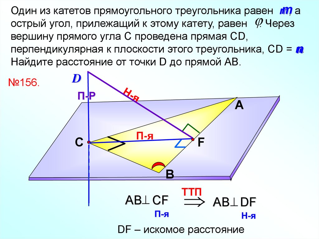 перпендикулярная к плоскости этого треугольника, СD = n.