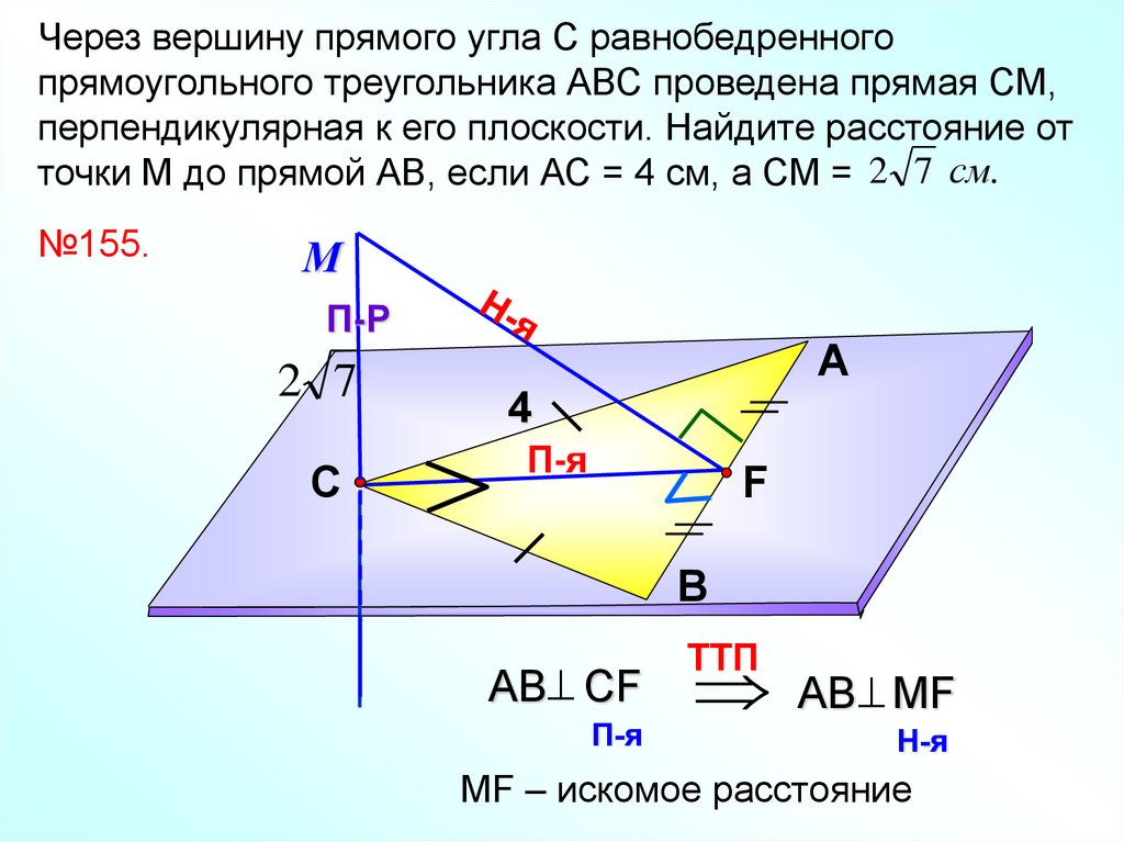 Найдите расстояния: 1) от точки А до прямой ВС;