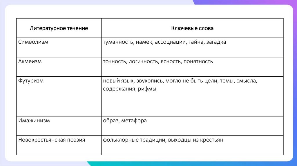 Литературные течения Серебряного векаСИМВОЛИЗМ