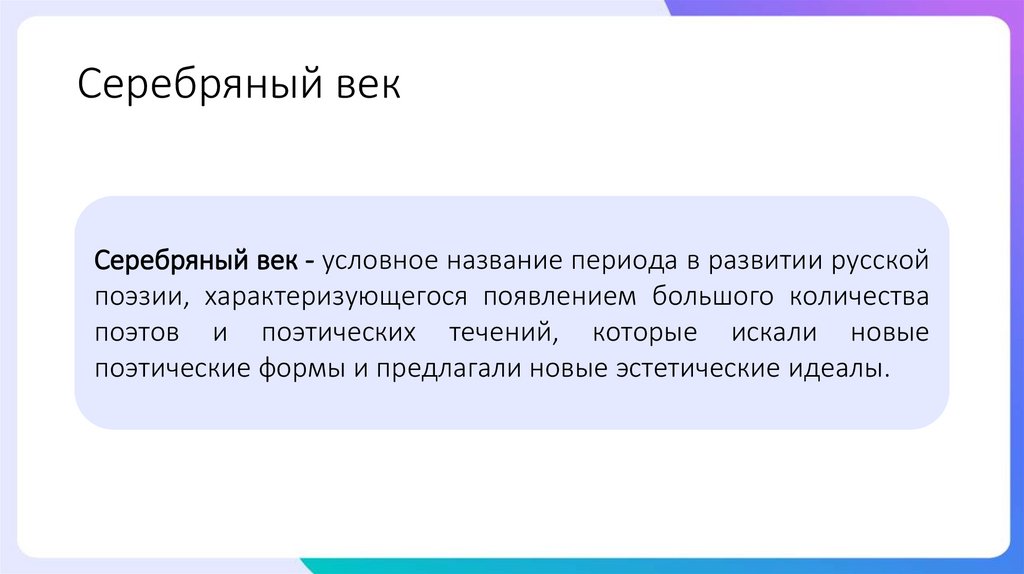 Серебряный векСеребряный век - условное название периода в развитии русской