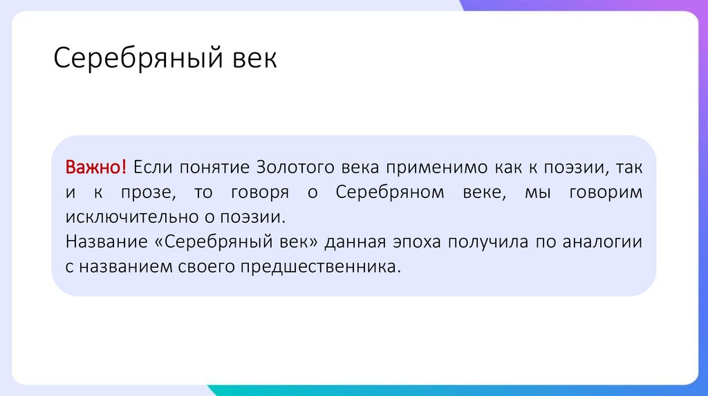Серебряный векВажно! Если понятие Золотого века применимо как к поэзии, так