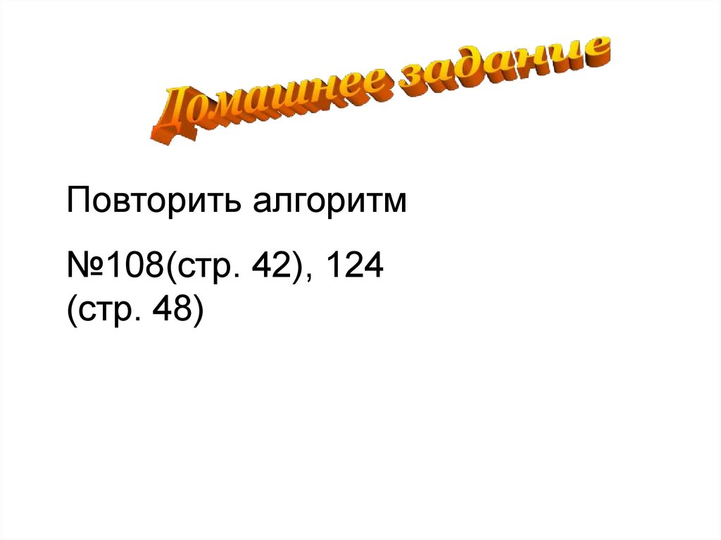 Повторить алгоритм№108(стр. 42), 124
